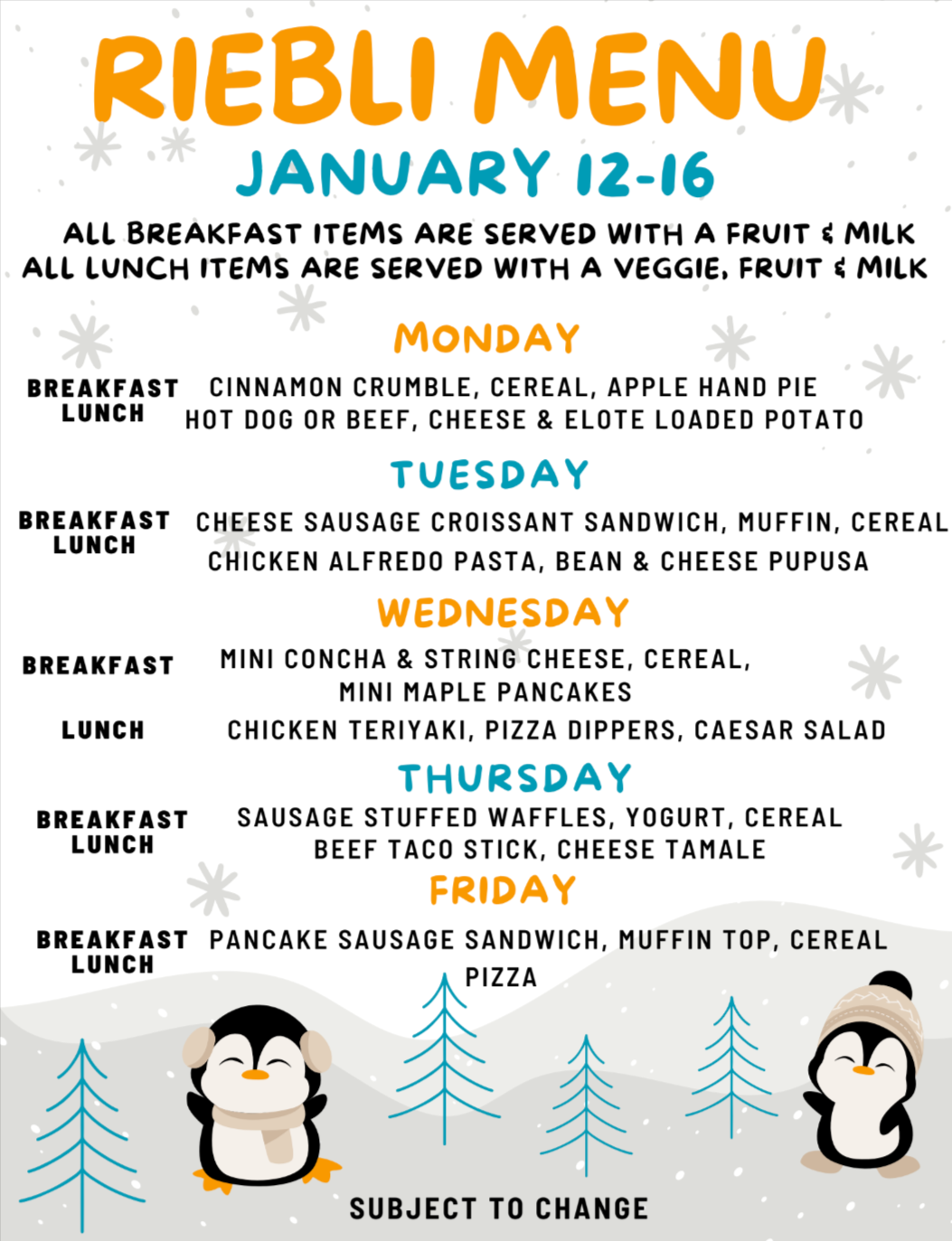 January 2026 Breakfast & Lunch Menus